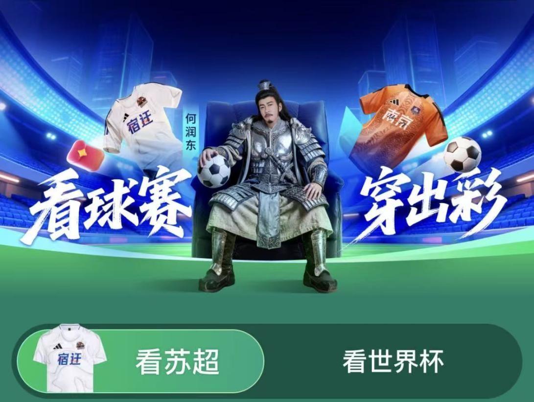 2026年苏超联赛激战正酣,4月18日,宿迁队迎来本赛季主场首战。曾饰演西楚霸王的演员何润东身披戎装亲临现场,为家乡球队加油助威。为助力本土赛事、传递城市体育热情,宿迁文旅携手京东服饰与海澜之家,一同推出“送宿迁老乡霸王同款T恤”应援活动,现场为何润东赠送定制“宿迁应援”T恤。面向线上用户,京东服饰不仅同步推出免费抽应援T恤活动,还集结了阿迪达斯2026江苏省城市足球联赛官方球员版球衣。打开京东APP搜索“苏超球衣”可直达“看球季”会场,参与趣味互动,入手赛事同款好物!