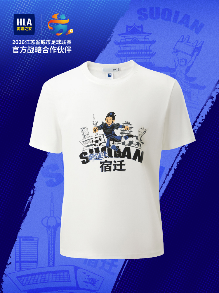 苏超是江苏首个以“全民参与+城市荣誉”为核心的省级足球联赛,打破职业联赛门槛,以全民足球新模式点燃全省足球热情。宿迁作为西楚霸王项羽故里,兼具英雄情怀与文化底蕴,本次主场首战因何润东亲临助阵,备受关注。活动现场,宿迁文旅联合京东服饰将海澜之家“宿迁应援T恤”赠予何润东,线上用户则可以在京东“看球季”会场参与免费抽奖活动,抽取“霸王同款”T恤!海澜之家宿迁应援T恤设计简单大气且采用功能性透气面料,赛场应援、日常穿搭都适配。